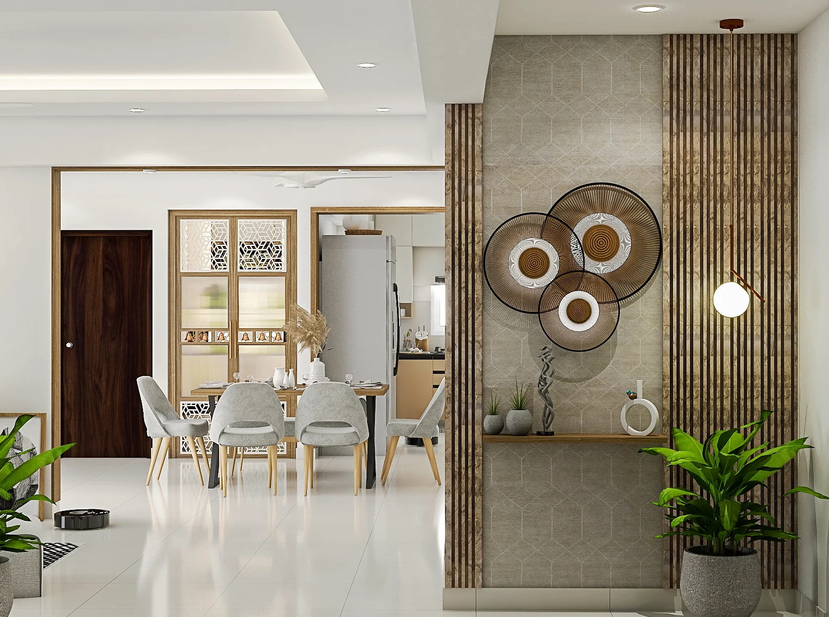We offer complete interior design services including residential and commercial interior design, space planning, 3D visualizations, modular kitchen design, custom furniture, lighting, wall treatments, and full turnkey solutions.